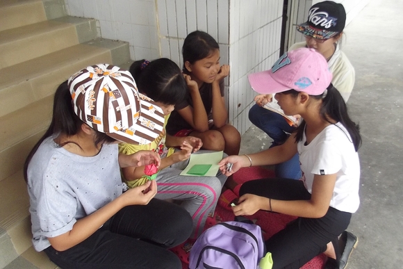晚上照常到村民家中义教,同学们把文具和玩具都分发给小朋友并拍照留念。