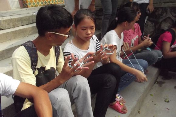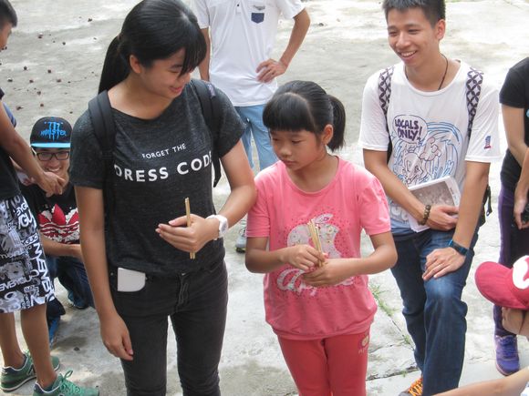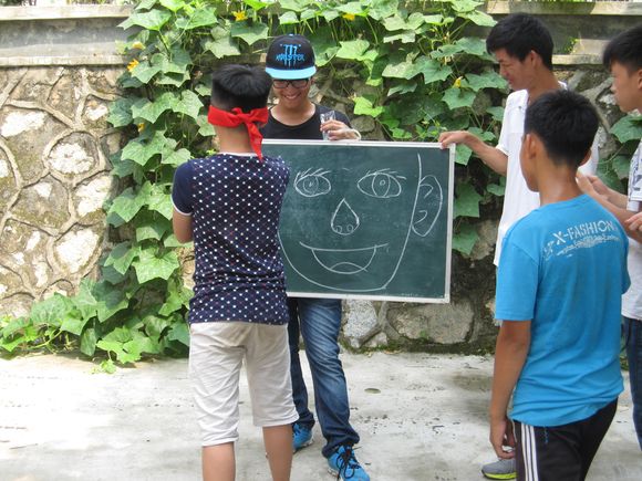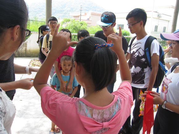 7月16日上午,珊瑚村小分队的同学们在村委办公楼旁的操场上为村里的小朋友举办了一场别开生面的游园会。游园会分为表演环节以及游戏环节:表演环节中同学们为小朋友表演了巧串花绳、魔术以及唱歌,很好地吸引了小朋友的注意力,让他们在游戏环节前得到热身;游戏环节的小游戏有夹乒乓球、摸鼻子和你比我猜,这三个游戏按顺序进行。进行第一个游戏时小朋友们表现得比较内敛,不敢参与活动。经过同学们的鼓励,小朋友们都慢慢地融入到游园会中,之后的两个游戏都进行得十分顺利,越来越多的小朋友加入到游园活动中来。小朋友和同学们一起玩耍,并收到了同学们预先准备的礼物,游园会在一片欢笑声中结束。