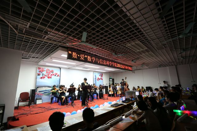 在图书馆一楼讲学厅举行“数•爱”2013届毕业生欢送晚会,院党委副书记曾学毛老师、09(3)班班主任王迎占老师、学工办主任高菲老师、团委书记杜亚辉老师均出席了本次晚会,2013届毕业生共聚一堂,享受着这欢歌盛宴,现场洋溢着浓浓的师生情和数院人满满的爱。