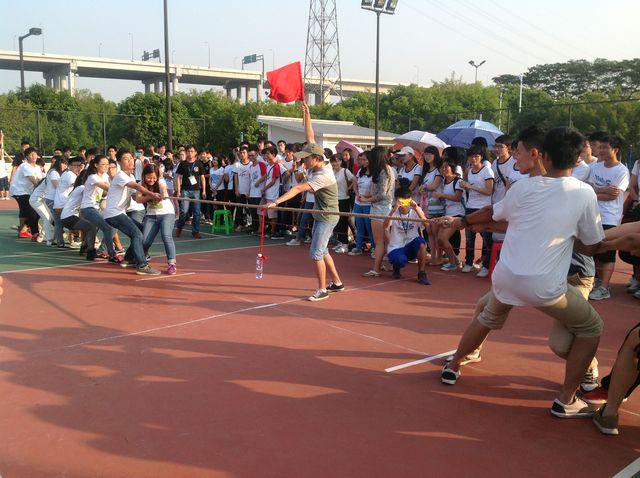 13级新生拔河赛在梅苑篮球场顺利开幕!2013级辅导员兼学院团委书记杜亚辉老师、兼职辅导员陈启彪老师以及13级新生们参加了本次比赛。