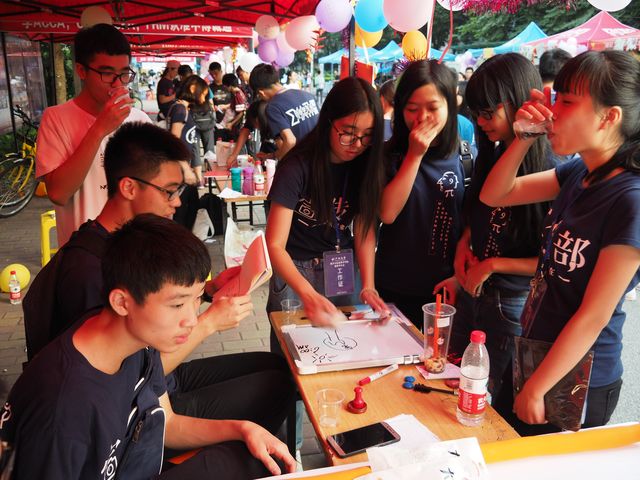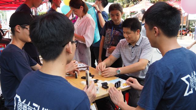 在此次嘉年华活动中,数院团委学生会的各部门都精心准备了各种有趣的游戏。尤其是“进击的瓶盖”,游戏规则是双方对战,让瓶盖穿过重重障碍,落在不同分数的指定区域,最后以得分最高者获胜。期间,有两位同学对战,双方开局步步紧逼,分数相差无几。可是在最后一击中,一方直接击走对方落在区域内的瓶盖,完美结束这场拉锯战。最后,不管最终输赢与否,都会得到各个部门独特的印章,让各位同学离终极大奖更进一步。数院的领导老师也参与到本次嘉年华中来,体验了各摊位的游戏同时参与了“魅力男生”的投票评选。