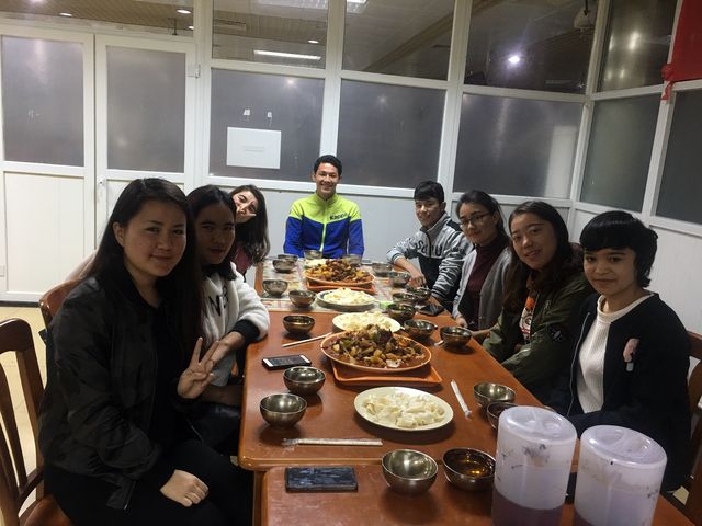 16级少数民族学生与辅导员何燕惠老师在清真小饭堂交流