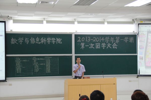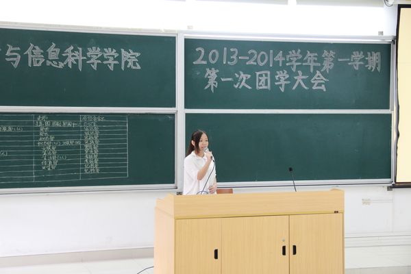 2013—2014学年第一学期第一次团学大会,学院青年教师陈刚毅博士、团委书记杜亚辉老师、团委副书记顾书老师、兼职辅导员陈启彪老师以及团委学生会全体干部参加了本次大会。