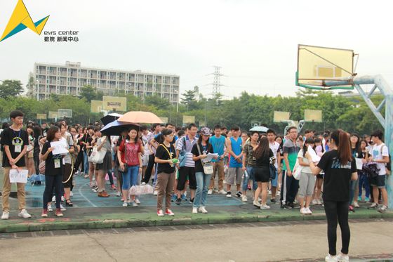 活动当天,虽然突来的天气变化给活动增添了不少难度,但工作人员还是顺利地完成了布场工作。下午2点30分,新生们开始进场,青春的脸上洋溢着对这次活动的期待,个个摩拳擦掌,跃跃欲试。