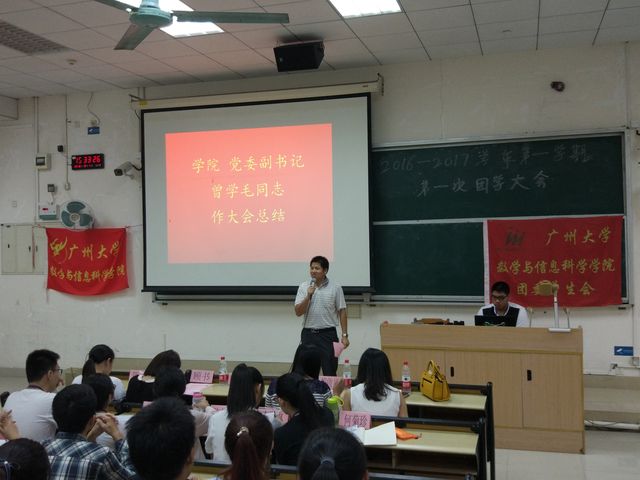 随后是团委书记胡啟岚老师作本次大会总结,她希望同学们学会分工合作,积极提高自身素质,成为学习好、工作能力强的人。最后,学院党委副书记曾学毛同志上台讲话,他要求:我们要关心国事,时刻与国家命运联系在一起,要明确目标,要有使命感和责任感,兼顾学习和工作,服务他人,锻炼自己。