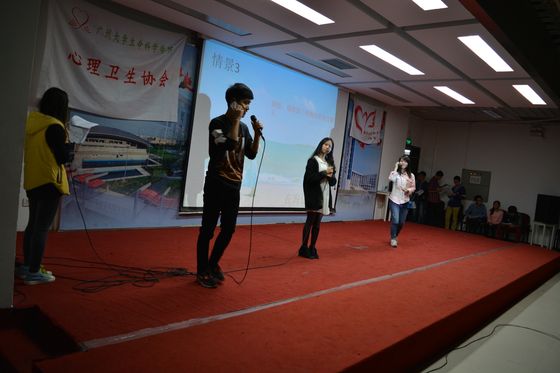 心理情景剧大赛表演内容来自于我们身边的人和事,浓缩了部分大学生在日常交往过程中所遇到的恐惧,自卑与焦虑等现象。目的是给同学们提供一个展示自我才华的舞台,并通过话剧等形式向同学们普及心理健康知识。比赛对象是数院及生科大一全体同学,一共分为6支队伍,每支队伍表演一个节目。
