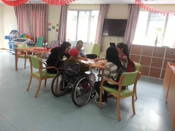 经过大约一个小时的车程,同学们到达了目的地。首先,由福利中心的社工为大家讲解老人们的生活习惯以及需要注意的细节。随后,在社工的带领下,同学们熟悉福利中心老人们的住处,同时走近一些起床的老人,与他们交流。有的身体健康的老人在走廊玩游戏,同学们就会加入他们,给游戏增加一些趣味性,使他们笑得更开怀;有的老人独坐在房间,同学们就会与他们坐在一起交流,这时他们大多会回忆他们的往事,而同学们在旁边认真的倾听,也让同学们感慨老一辈人的生活不易。