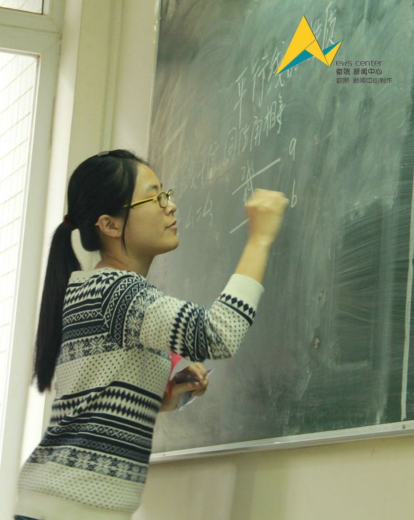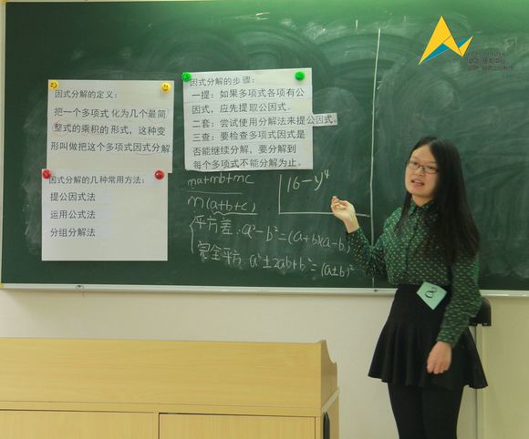 在模拟课堂环节,每位参赛选手有5分钟讲课时间。在这5分钟之内,参赛选手借助黑板进行授课。在此次比赛中,大部分参赛选手是选用初中的数学知识点进行讲解。例如,证明两个三角形相似、如何解一元二次方程、反比例函数、圆的一般方程、因式分解,平方差公式等等。讲解的方式也是各有各的特色。其中,一位参赛选手用太阳与海平面的关系引出直线与圆的位置关系,这样的引出知识点自然,恰当,让同学们将抽象的知识与具体的事物相结合。