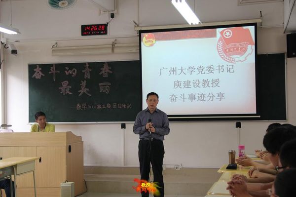 党委书记庾建设教授在“奋斗的青春最美丽”主题团日活动上分享奋斗事迹