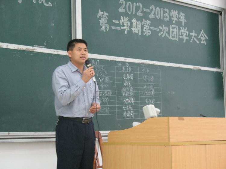2012-2013学年度第二学期第一次团学大会在理南622顺利召开,学院党委副书记曾学毛老师、学院团委书记杜亚辉老师、团委副书记顾书老师以及团委学生会各部门成员出席本次大会。
