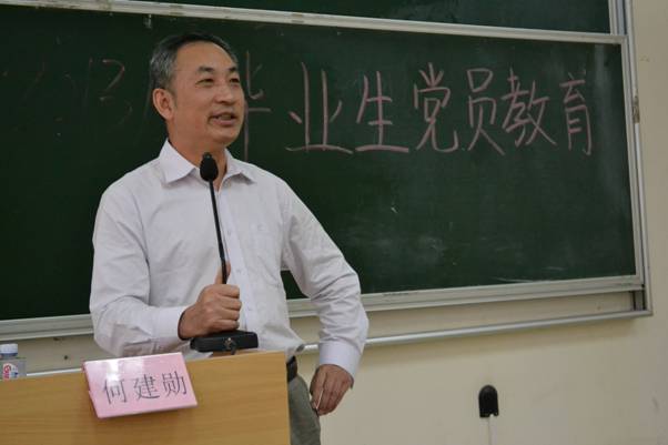 5月6日下午,学院又特别面对68名毕业生党员进行了党性专题教育,学院党委何建勋书记、曾学毛副书记出席并作了发言。何建勋书记作了“感恩母校”主题讲话,鼓励党员学生怀着一颗感恩之心走出校门,走上工作岗位。在以后的工作中发挥党员的先锋作用,不辞劳苦,踏踏实实做事,老老实实做人,为母校的荣誉争光。