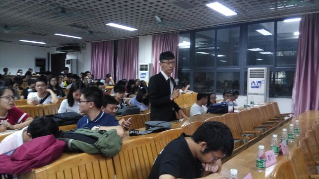 接下来由来自数院的师兄师姐给我们带来精彩诙谐的表演赛。双方就“恋爱这门选修课是没选上比较惨还是挂科比较惨”展开激烈得辩论。