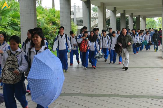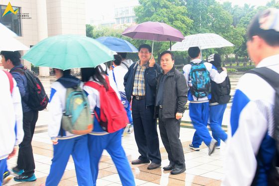 冒着寒风细雨,邝维煜纪念中学的师生们来到了杏吧视频