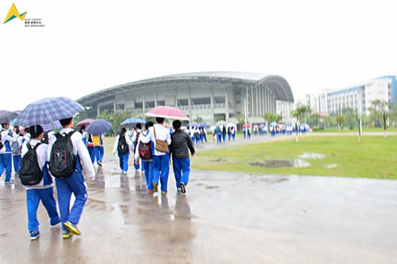 工作人员引导来访师生参观了学校体育馆、图书馆、中心湖以及教学楼等主要学习场所和学校的标志性建筑。本次交流活动旨在巩固双方共建优质生源基地,大家互相学习借鉴,同时也建立了深厚的情谊。烟雨朦胧,交流仍在继续。