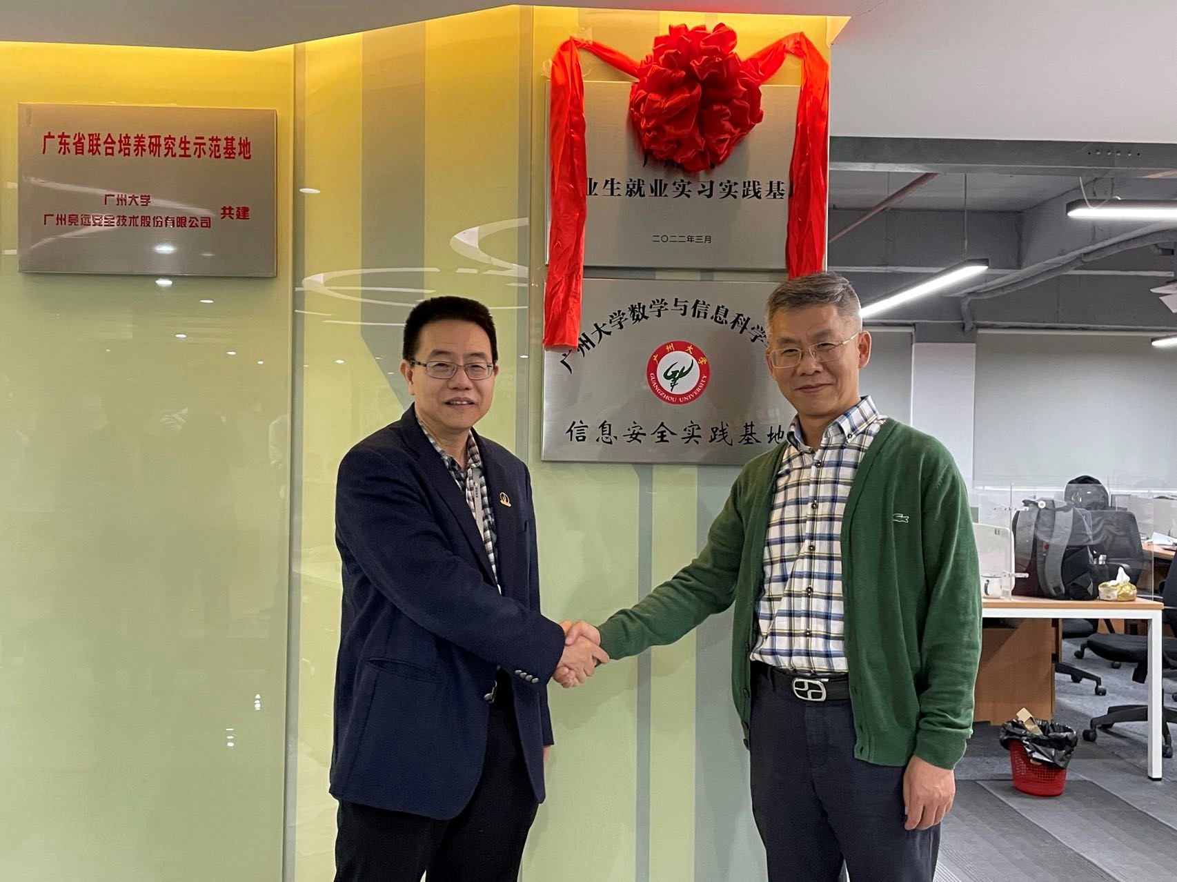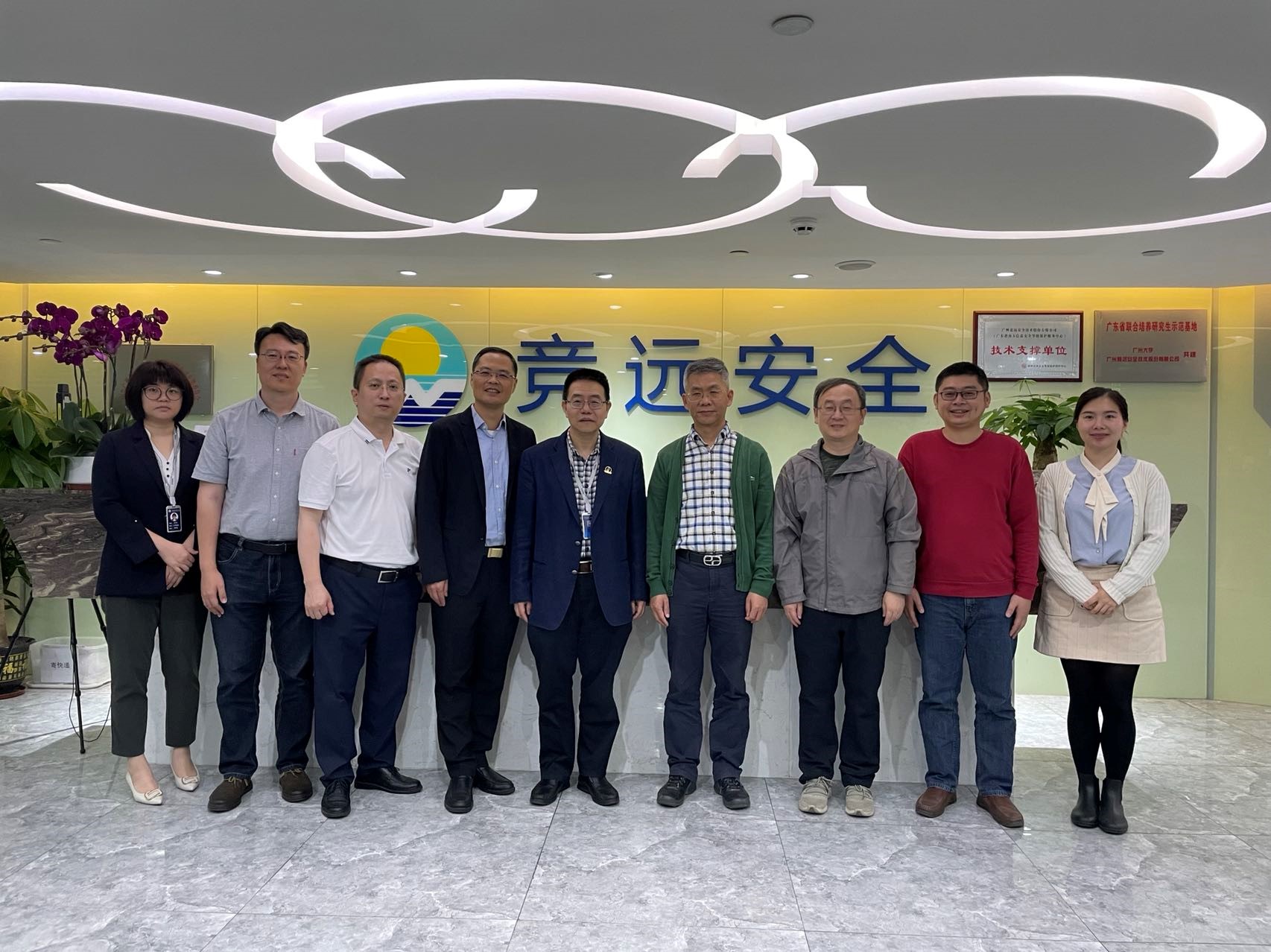 院长彭济根率队走访广州竞远安全技术股份有限公司,与该司董事长林殿魁签署毕业生就业实习实践基地建设协议。 信息科学系主任唐屹教授、学院林志强老师、学工办郭翠敏老师,竞远安全副经理梁承东、公司代表王海华、王正临、张少妹、叶筱艺等参加座谈会,共同见证签约和基地挂牌仪式。