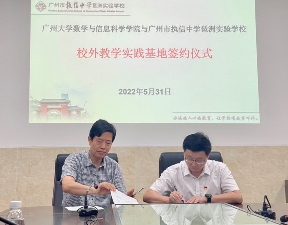 2022年5月31日,曹广福教授走访了执信中学琶洲实验学校,与该校签署了院级实习基地协议。