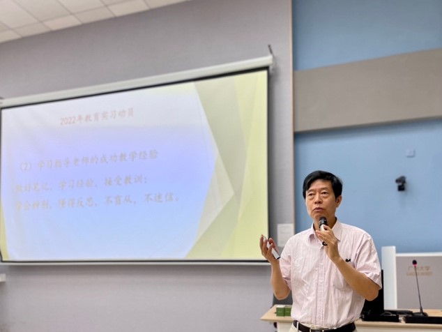 曹老师指出,要通过实习环节熟悉备课、讲课、评课、教研活动、批作业、学生工作、科组活动等教学环节的全过程,做好笔记,学习经验,接受教训,学会辨别,懂得反思,不盲从,不迷信。不畏艰苦,遵守实习学校的各项规章制度。把指导老师的每一节课当成自己的课,同步备课,这样听课才有收获。听课后认真反思,总结经验教训,把他人的经验变成自己的能力,把他人的教训变成自己的警示。认真对待指导老师交给自己的每一项任务,不怕吃苦,懂得吃亏是福的道理,珍惜上讲台的每一次机会,发挥自己最大的潜能。