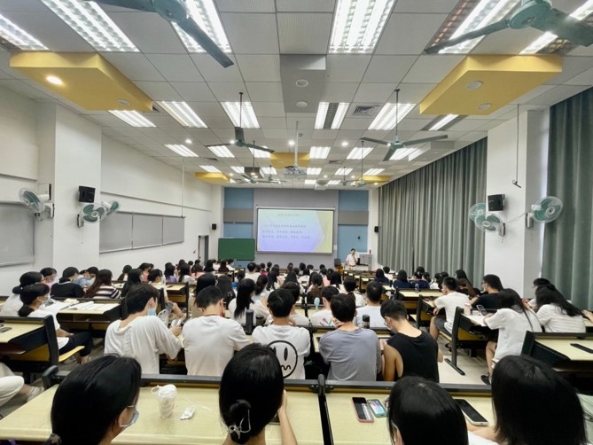 在理南210召开2019级师范生及2021级教育硕士生实习动员大会。数学教育中心主任曹广福教授围绕着实习的意义、实习期间需要注意的事项、未来的机遇以及实习基地等方面做了详细说明。