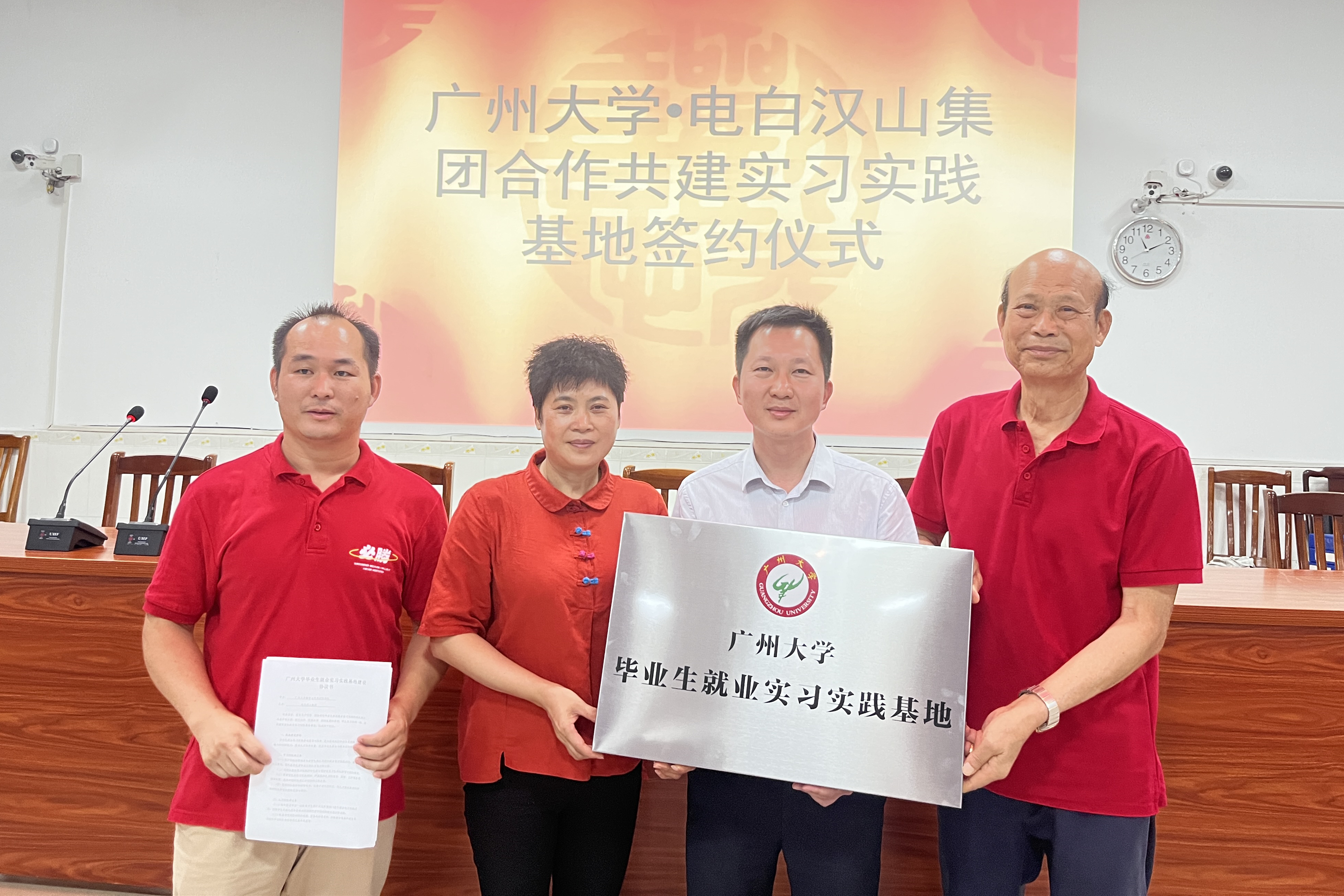 毕业生就业实习实践基地签约暨授牌仪式在电白汉山集团举行。我院党委副书记杨春荣、学工办龚克里老师,电白汉山集团董事长黄德明、汉山学校高中部校长陆青霜、初中部副校长张大开,汉山学校高一级全体师生参加签约仪式。