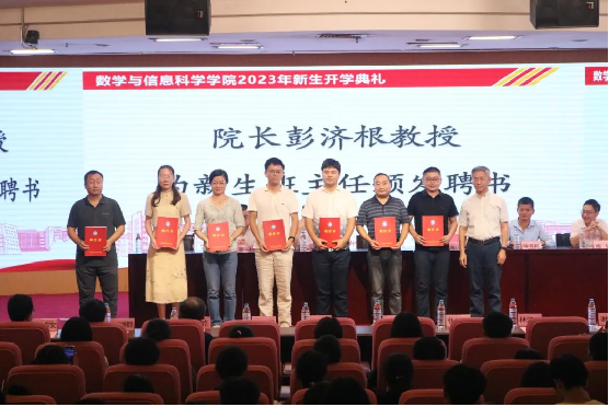 接着,学院院长彭济根教授为各位新生班主任颁发聘书。学院党委书记周海兵老师宣读2023年军训积极分子名单并为获奖同学颁发奖状。