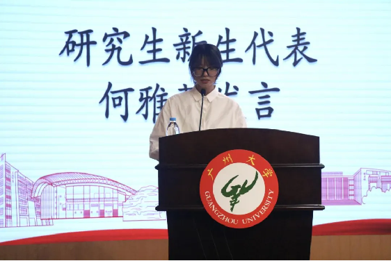 研究生新生代表何雅萱同学和本科生新生代表刘晋予同学上台发言。她们表示,无论是大学生还是研究生,都应该以学业为主,沉下心来,摆正求学的态度,转变学习心态。将学业追求和人生理想摆在第一位,同时也要珍惜时光,锐意进取,做砥砺前行的时代青年。