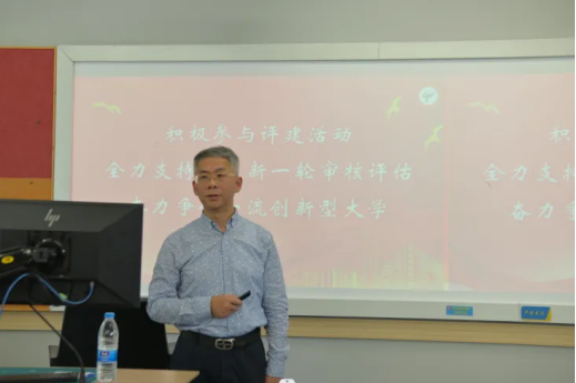 两次接受评估的成绩等方面向同学们详细阐述了评建工作的重要意义。彭济根院长还全面地向同学们介绍了学院人才培养的理念和目标,以及学院在提升本科教育教学质量上所做的各项改革和所取得的良好效果。他强调,本科教育教学评估对学校、学院和每一个同学都具有非常重要的现实意义,希望同学们将学院的精神风貌贯彻于个人学习生活全过程,珍惜大学时光,牢记校训和时代使命,努力学习、立志成才,为新时代中国特色社会主义建设贡献自己的力量。周海兵书记则从教育教学评估专家的观察视角出发,阐述了评估工作的重要意义。她指出,同学们的学习态度、行为规范、精神风貌等非智力因素是评估工作一项非常重要的指标,关乎评估工作的成败。她要求同学们以主人翁的心态、饱满的热情积极参与本次评建活动,贯彻学院的优良学风,提升自身素质,展现学院良好的精神风貌,为学校创建一流创新型大学做出自己应尽的贡献。