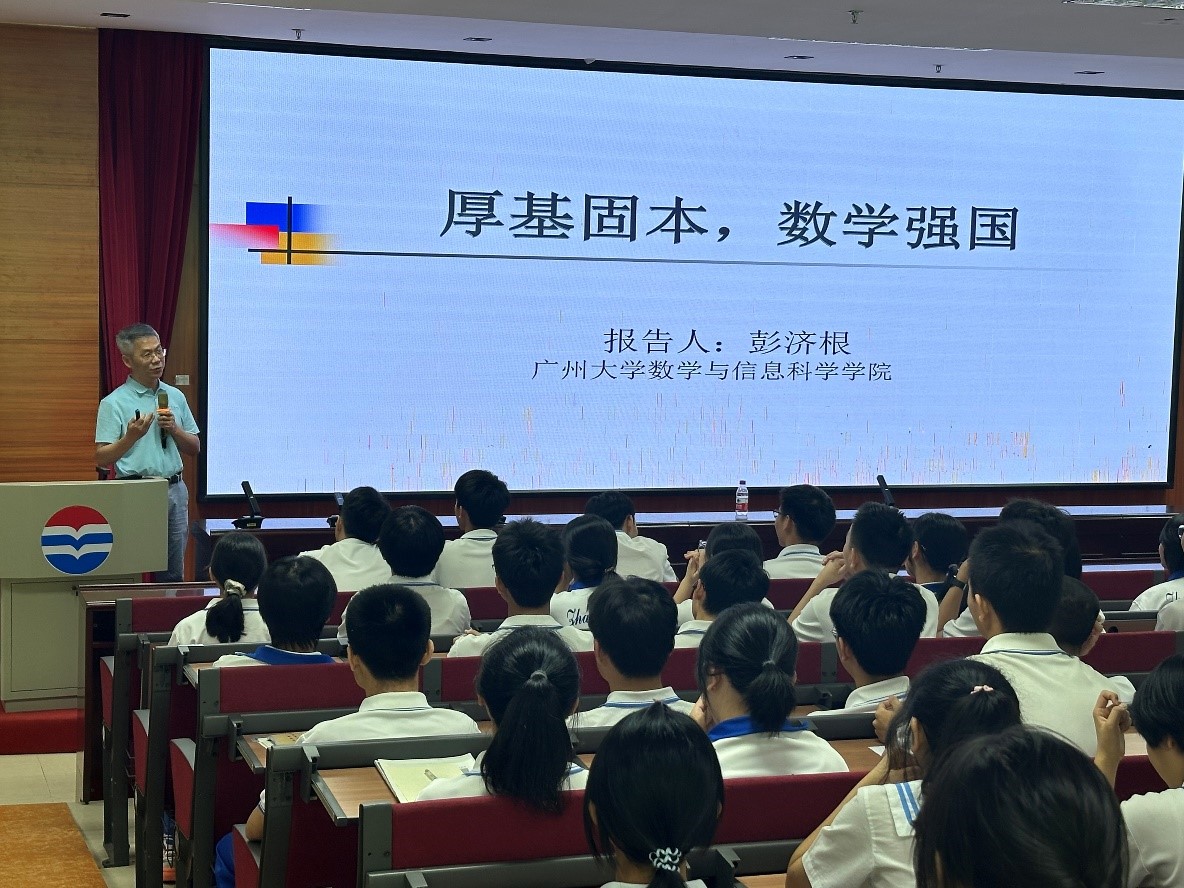 在湛江二中,彭济根院长面向150多名学生,以“厚基固本、数学强国”为题作了一场非常精彩的科普演讲。他从“什么是数学?数学的作用与价值是什么?”为切入点,讲述了在人类所经历的六次科技革命中数学所发挥的巨大的积极作用。他说,人工智能、大数据的核心就是数学,未来科技的进步一定是建立在数学研究的基础上的。他鼓励同学们努力学好数学,培养对数学的兴趣爱好,锻炼自己的数学思维,为迎接人工智能时代的到来打下坚实的科学基础。彭院长渊博的数学知识、缜密的科学逻辑、前瞻的研究视角,赢得了在场的学生热烈的掌声,演讲结束后同学们纷纷请彭院长签名留念,表示要继续好好学习,争取考上杏吧视频