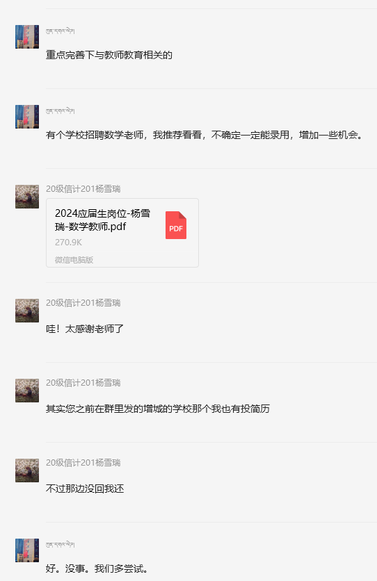 学院还实施了包括在年级就业委员群、家长群、班主任群、校友群内推等多渠道进行就业动员和系列就业帮扶措施,为毕业生提供更多就业机会和资源。这些措施的落地执行,拓宽了毕业生的就业信息渠道,有效地帮助毕业生顺利实现高质量就业。