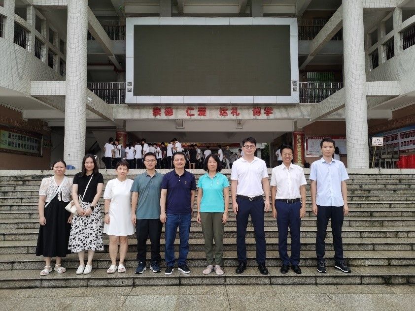党委组织广东省名师工作室团队成员和学院“数”梦翱翔暑期实践团前往英德中学开展示范课讲座及交流活动。学院党委书记周海兵、党委副书记张昭、师范教育部主任张蜀青教授、英德市教师发展中心副主任陈文增、英德中学副校长段毕君等共同参与了此次活动。