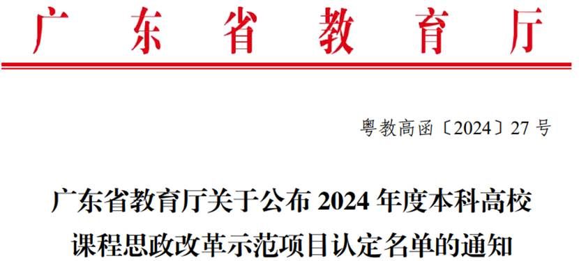 近日,广东省教育厅印发了《广东省教育厅关于公布2024年度本科高校课程思政改革示范项目认定名单的通知》(粤教高函2024-27号),杏吧视频