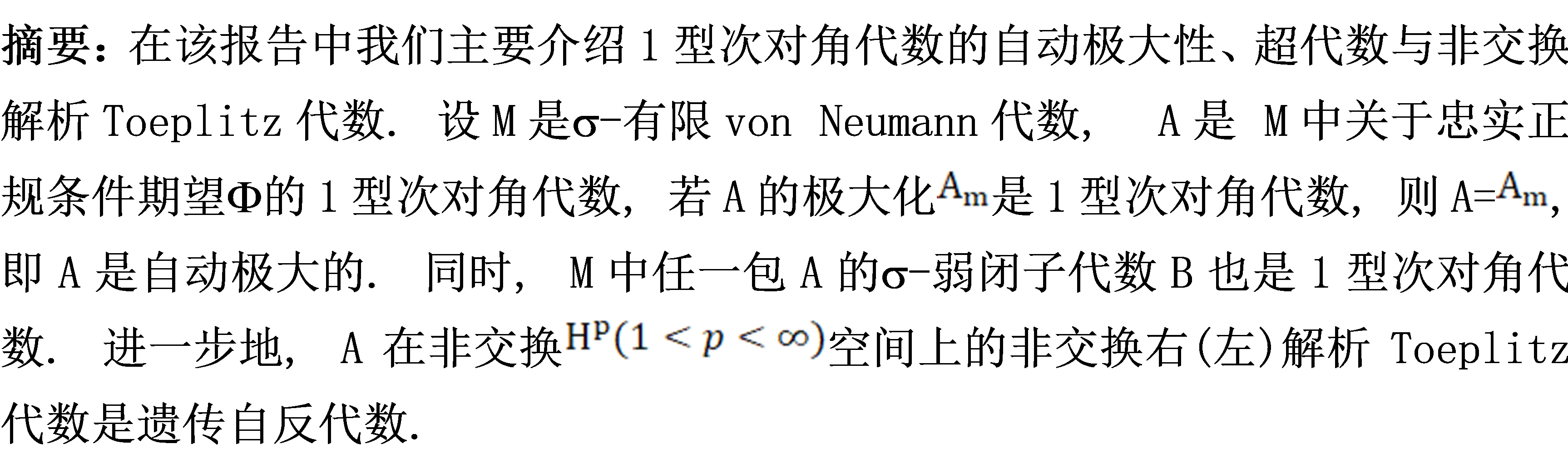 题目:1型次对角代数的超代数与非交换解析Toeplitz代数