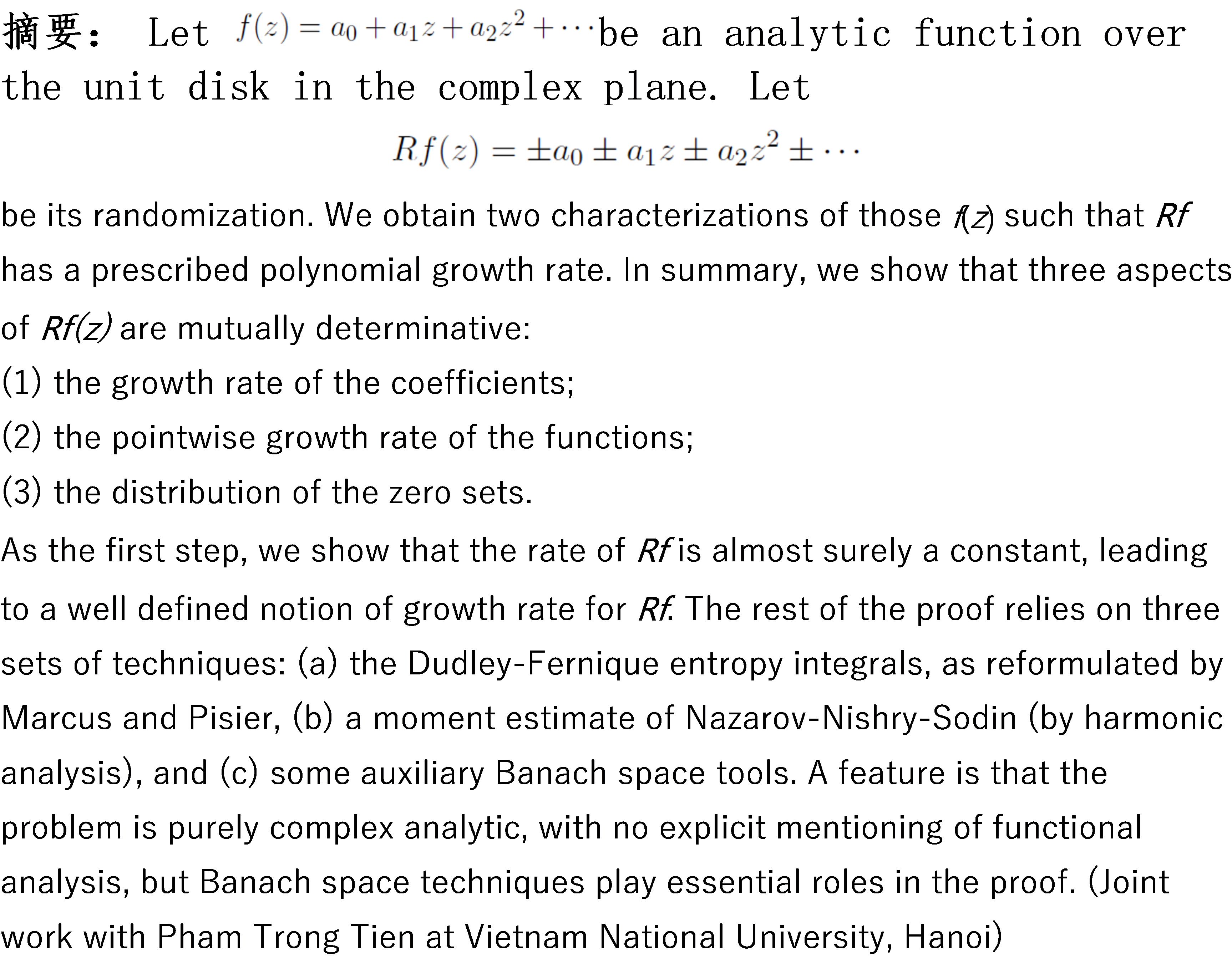 题目:Random Analytic Functions with Polynomial Growth Rate