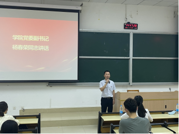 学院党委副书记杨春荣对毕业生党员们长期以来为推动学院的建设发展所作的努力表示感谢,希望同学们要坚定理想信念,不忘初心,牢记使命,加强道德修养,强化责任担当,提升精神境界,树立高尚品格,争做新时代的奋斗者和追梦人,要把自己的个人理想和国家的发展紧密结合,胸怀祖国,放眼世界。同时,他还希望毕业生党员们继续发挥党员的先锋模范作用,站好最后一班岗,做好疫情防控工作,关心帮助身边的同学。