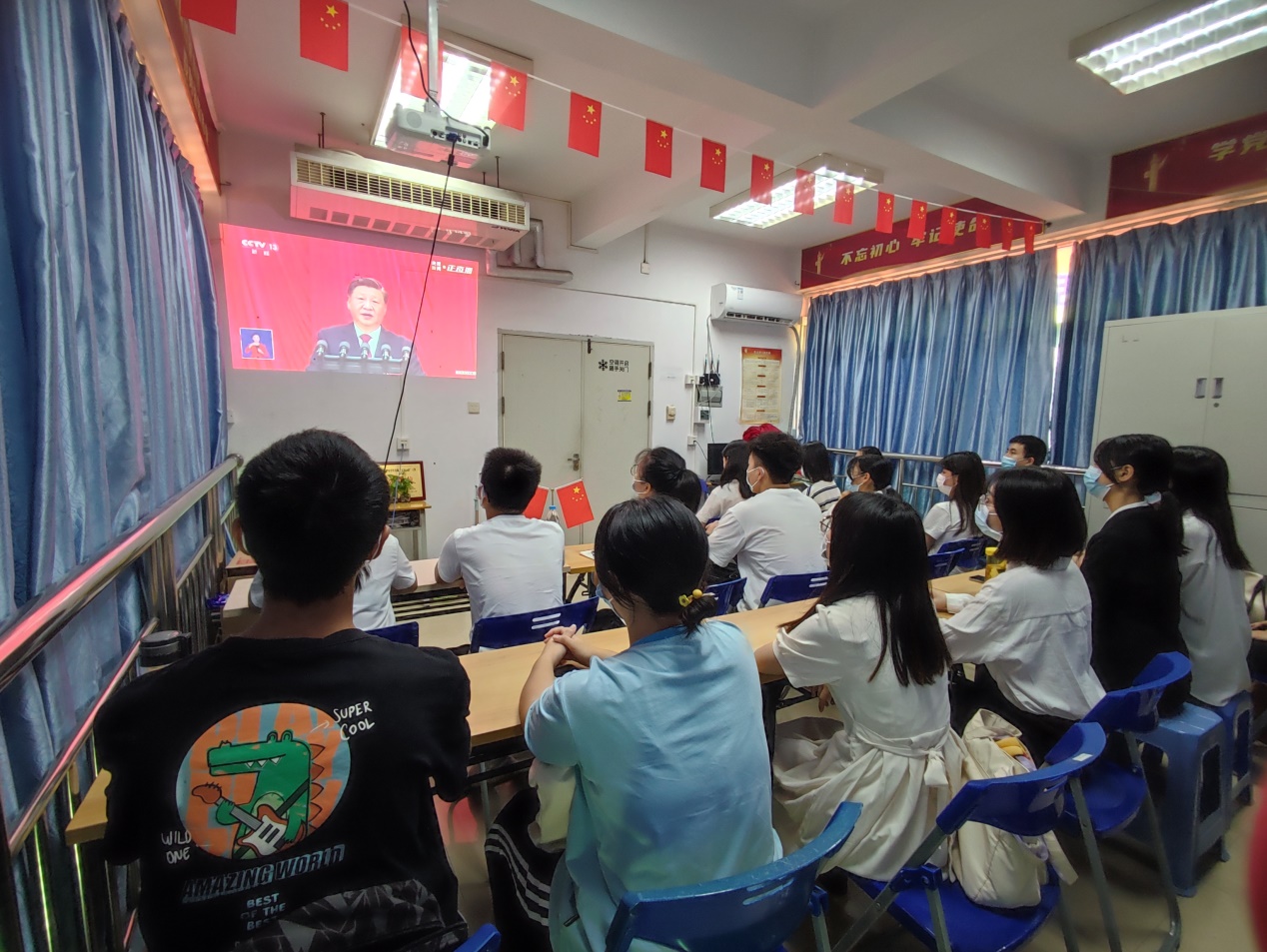 师生们一致认为,习近平总书记的重要讲话高屋建瓴、内涵深邃,是一份全面擘画未来、描绘中华民族伟大复兴光辉前景的报告。我们一定要认真贯彻落实习近平总书记的重要讲话精神,坚持对马克思主义的坚定信仰、对中国特色社会主义的坚定信念,埋头苦干、奋勇前进,为全面建设社会主义现代化国家、全面推进中华民族伟大复兴而团结奋斗。