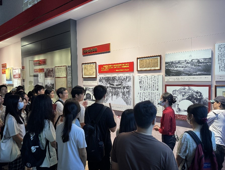 在农讲所纪念馆,支部党员面对鲜红的党旗,重温入党誓词。在讲解员的带领下,大家从第六届农讲所筹办、组织机构、学习革命理论、注重军事训练、投身社会实践五方面学习感悟广东乃至全国农民运动蓬勃发展背后的精神力量,通过参与多媒体互动展示项目及“毛泽东冒雨演讲”还原场景放映回朔历史,进一步体会星星之火的燎原之势,坚定了广大学生党员作为新时代的中华儿女,学习党的历史、高举信仰之旗、践行红色精神的理想信念。