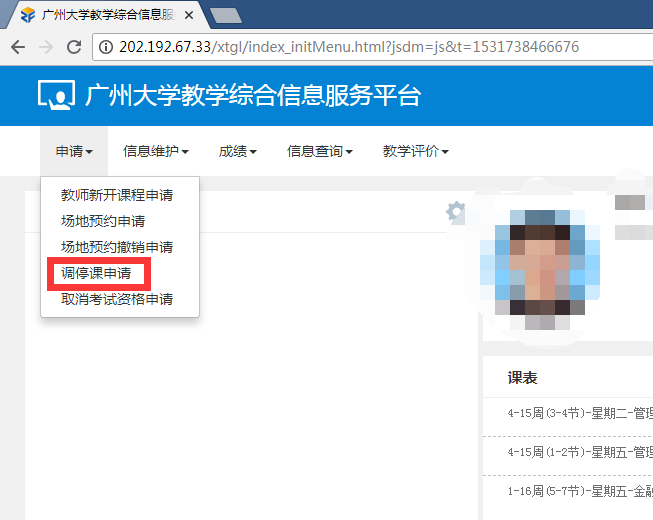 20180831修改了1)只换某些周次的教师或教室的操作方法,操作概要:选择调课或换教室或换教师,保持调课前后周次,星期节次相同,选择“代课教师”或“替换教师”即可,系统将自动识别教师的调课行为,详细见第二步;2)查看不通过原因的方法,点击流程跟踪即可查看,详细见第三步。