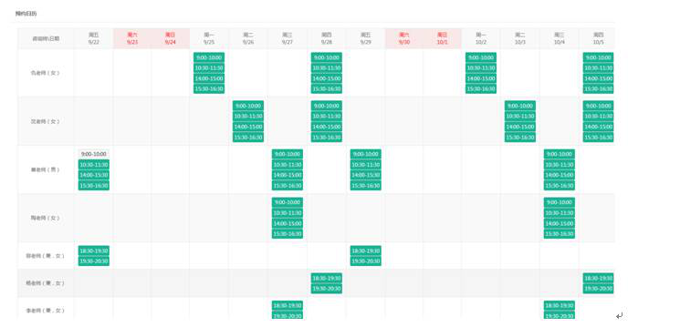 6. 点击 “咨询预约”,将会呈现如下预约日历界面: