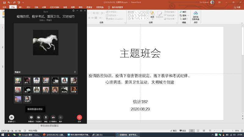 副院长蒲学科教授参加了数学195班的班会,他提醒同学们要遵规守纪、加强防范,筑牢群防群治的基石,通过劳动教育和爱国卫生运动传播疫情防控的正能量。希望同学们加强自律,制定好学习计划,冲刺考试。努力学习专业知识,练就过硬本领,自觉加强思想政治修养,厚植爱国主义情怀,以“五有”精神砥砺成才。班主任焦峰老师在班会上提醒学生严格遵守学校有关的防疫规定,认真对待晨午检、宿舍消毒通风、养成良好作息,做好环境卫生的整洁,自觉维护校园的安全卫生健康环境。