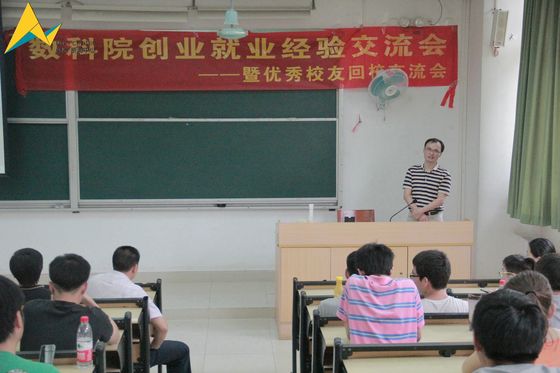 举办的创业就业经验交流会暨优秀校友回校报告会在理南110拉开了帷幕。此次交流会邀请到广州市普博信息科技有限公司总经理吴德进、动网先锋周昆山、深圳市歌舍文化传媒有限公司运营总监谢裕强、安全技术顾问孙新艺、蓝盾信息安全技术有限公司技术总监毛丹等六位该学院毕业的优秀校友回校交流,两百多名相关专业学生参与交流,学院党委副书记曾学毛同志、信息科学系周权教授等学院领导老师出席了本次交流会。