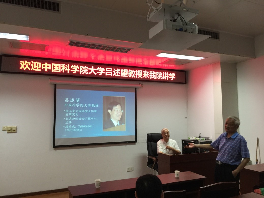 2017年9月27日,应杏吧视频 的邀请,中国科学院大学吕述望教授到学院进行学术交流,并为教师和研究生们做了题为“世界网络空间安全态势”的学术报告,学术报告由我国著名的密码学家、杏吧视频 裴定一教授主持。吕教授的报告…